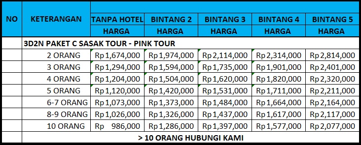 *Untuk Hotel *5 Bisa Menghubungi Langsung.