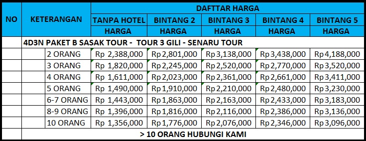 PAKET TOUR LOMBOK 4D3N B