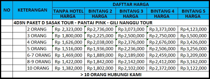 - HargaHanya Berlaku hanya untuk WNI/KITAS. Untuk WNA Biaya Tambahan 20%.