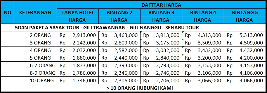 PAKET TOUR LOMBOK 5D4N A